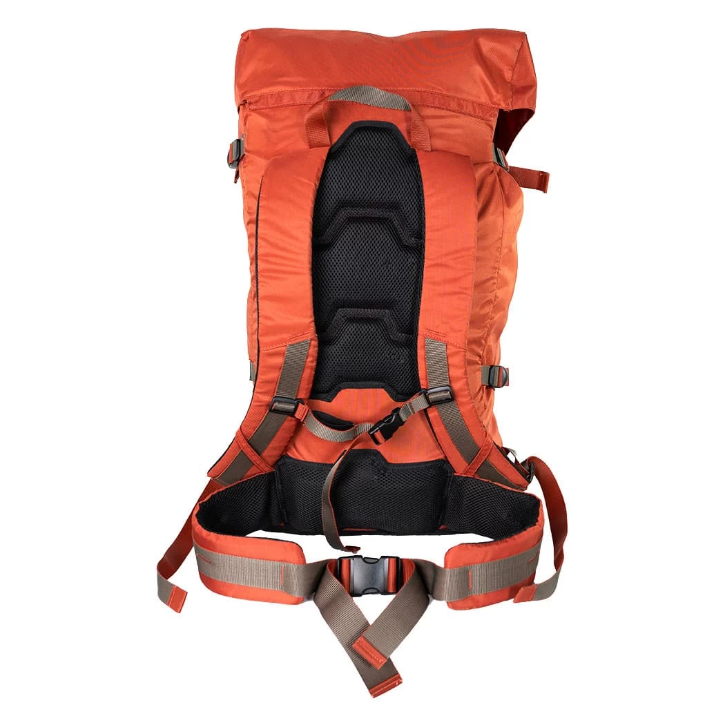 - Side compression straps compress the load or act as lash points for extra gear