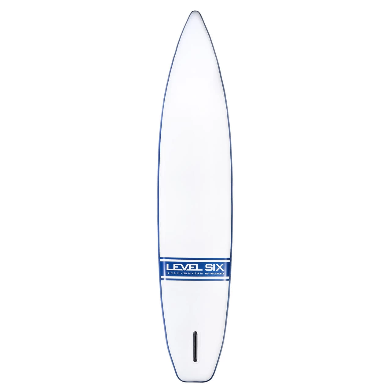 Great for fitness paddling and exploring on lakes or oceans, with a slightly aggressive nose design to cut through small waves. This inflatable SUP is shaped to move across the water quickly, but it’s still stable enough for casual paddling days. Packs into a roller carrying bag with shoulder straps so you can throw it in the trunk on beach days or hike it into that secluded lake.