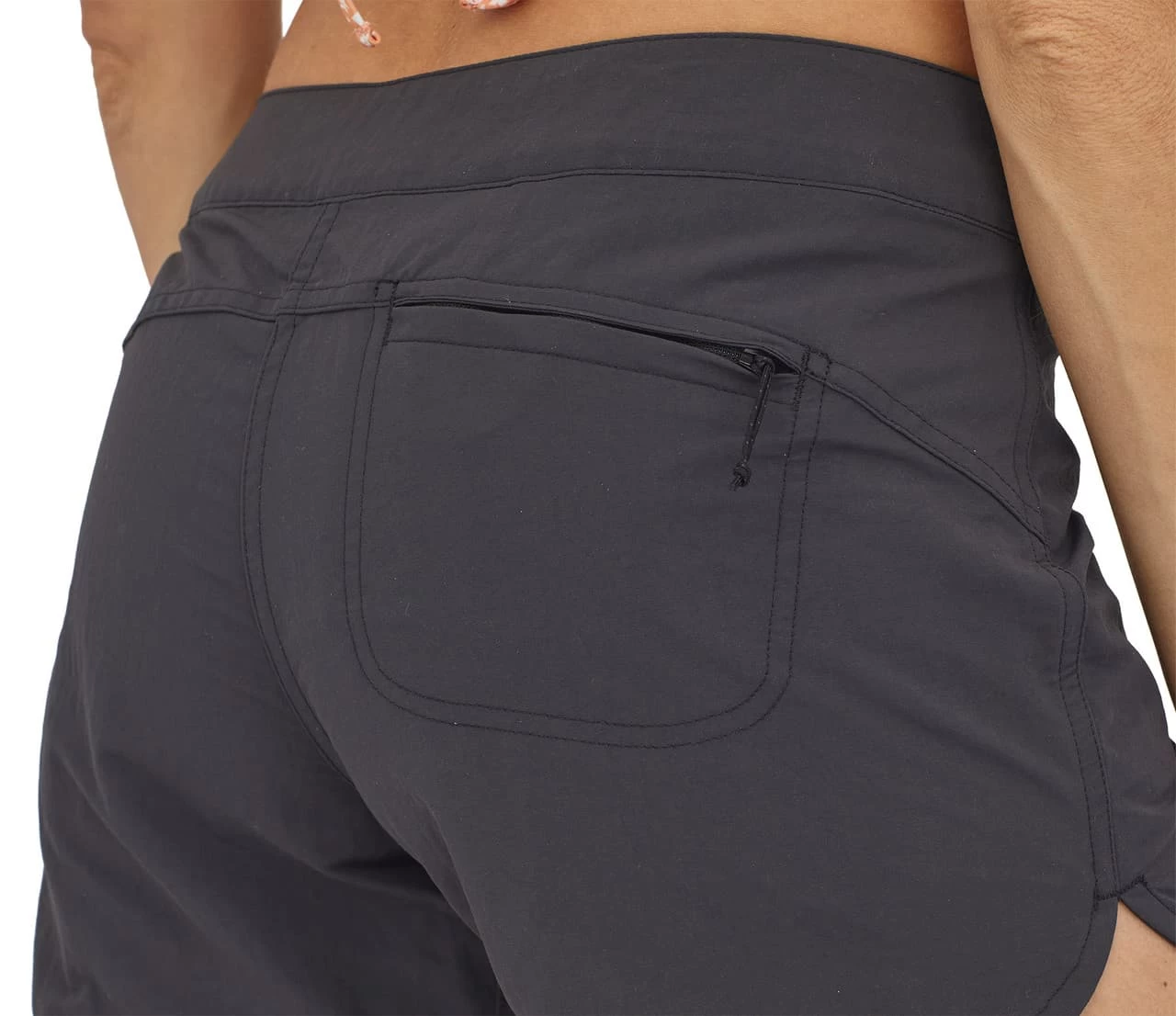 - Flat-lying fly with concealed button and drawstring closure is comfortable while paddling