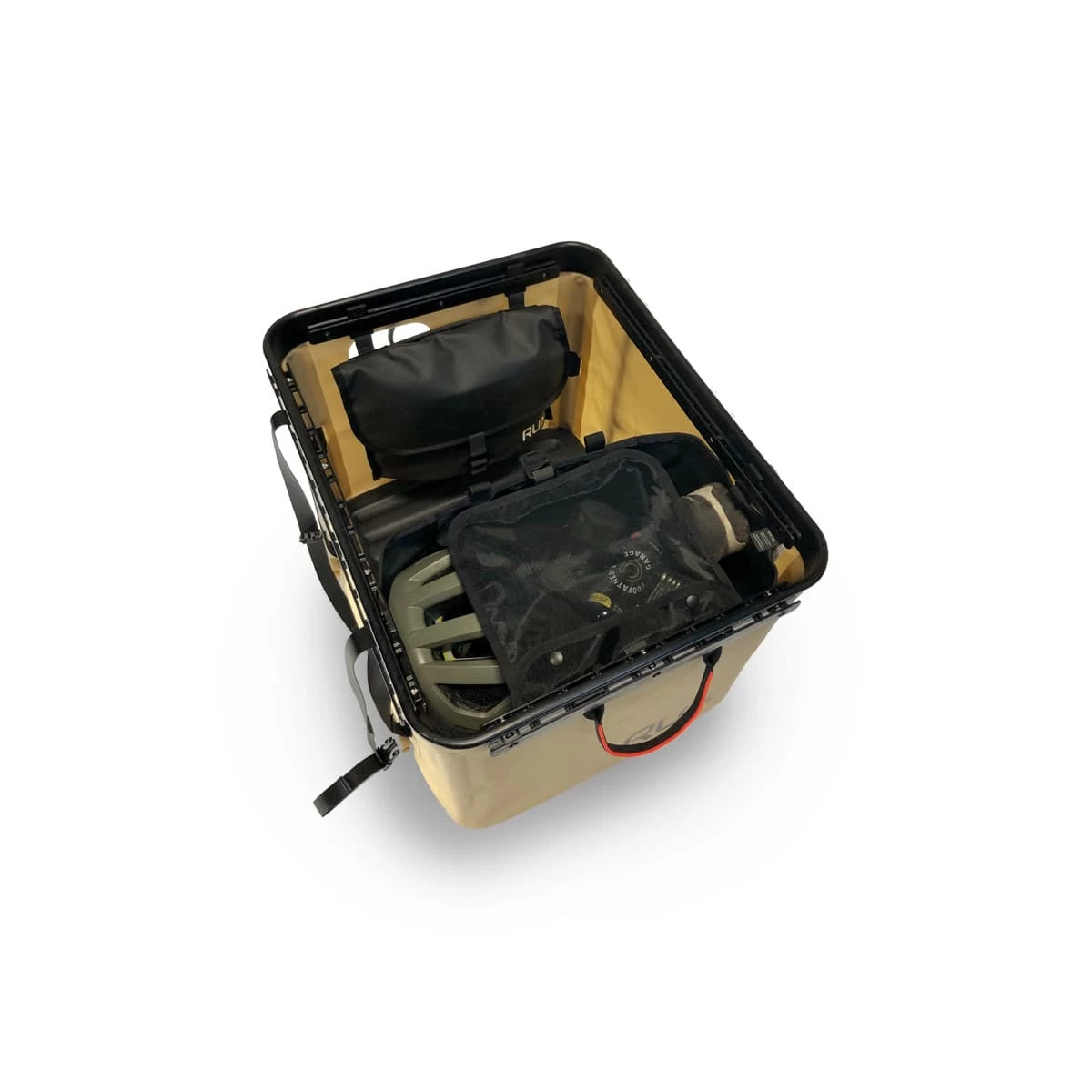 Grab it and go, the RUX 70L and essentials set is an all-in-one storage and traveling solution. It packs like a bin, carries like a bag, and stores like a box. The TPU construction is completely waterproof, and it compresses down flat for storage, then pops back into it’s box-like shape for easy and efficient packing. The essentials kit includes a 70L RUX, as well as RUX’s Bag and Pocket components.