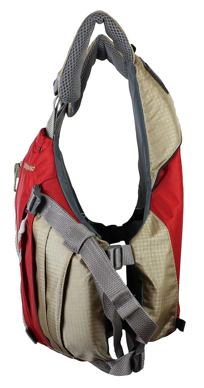 A comfortable touring PFD featuring an ergonomic shaped torso. Lined hand-warmer pockets thaw your fingers during chilly pre-dawn launches to beat the afternoon anabatic winds. The cross-cinch straps keep the foam low on the torso for a good fit, even when swimming.